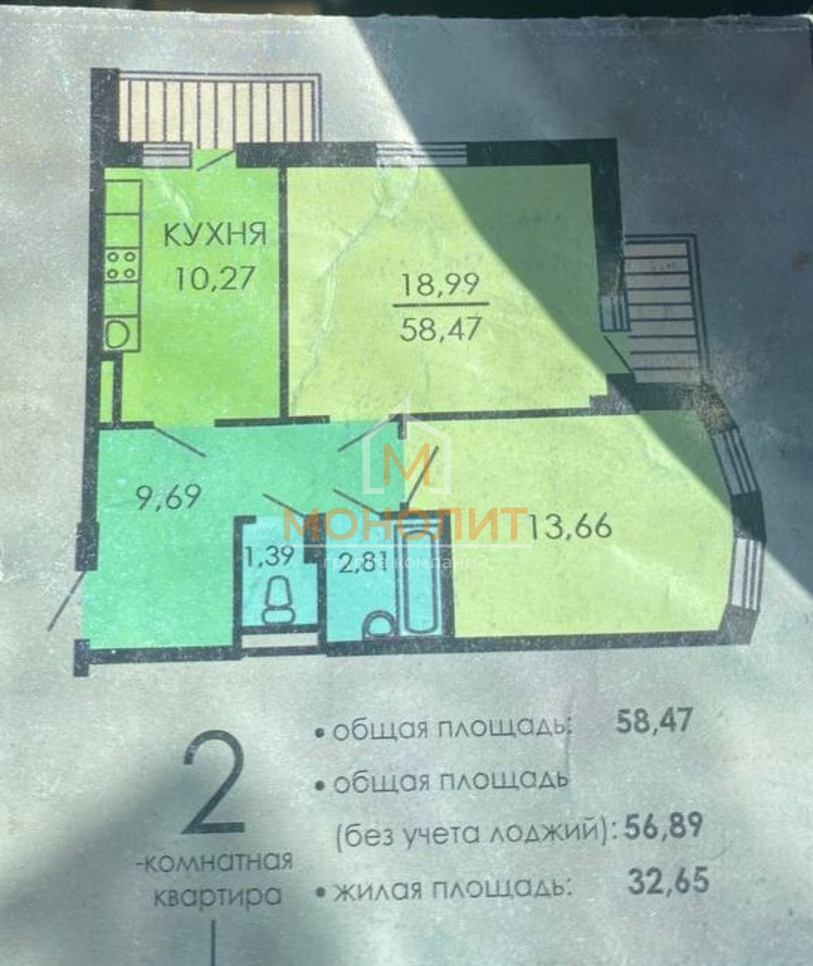 ✔️ общая площадь 53,7 м²