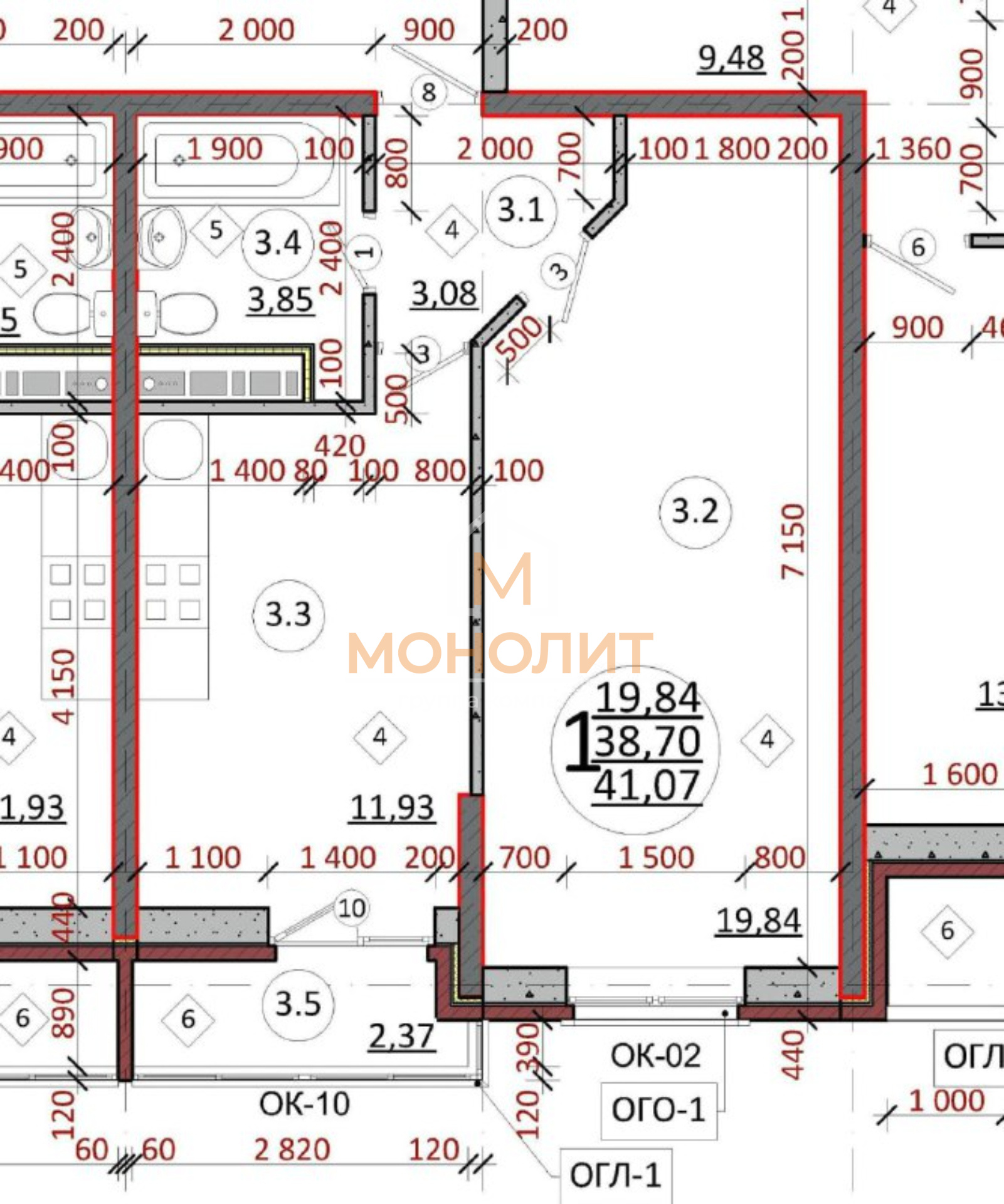 ✔️ общая площадь 41 м²