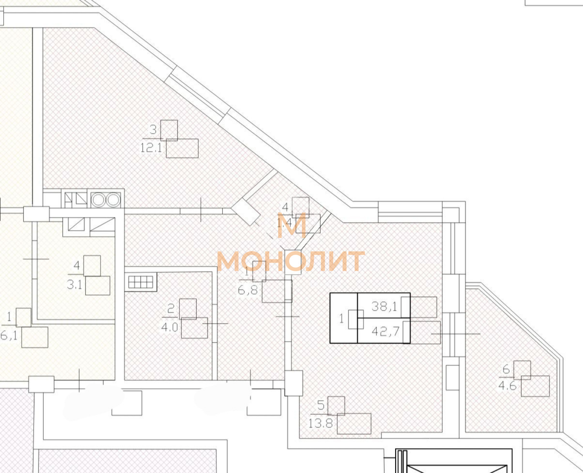 ✔️ общая площадь 42,7 м²