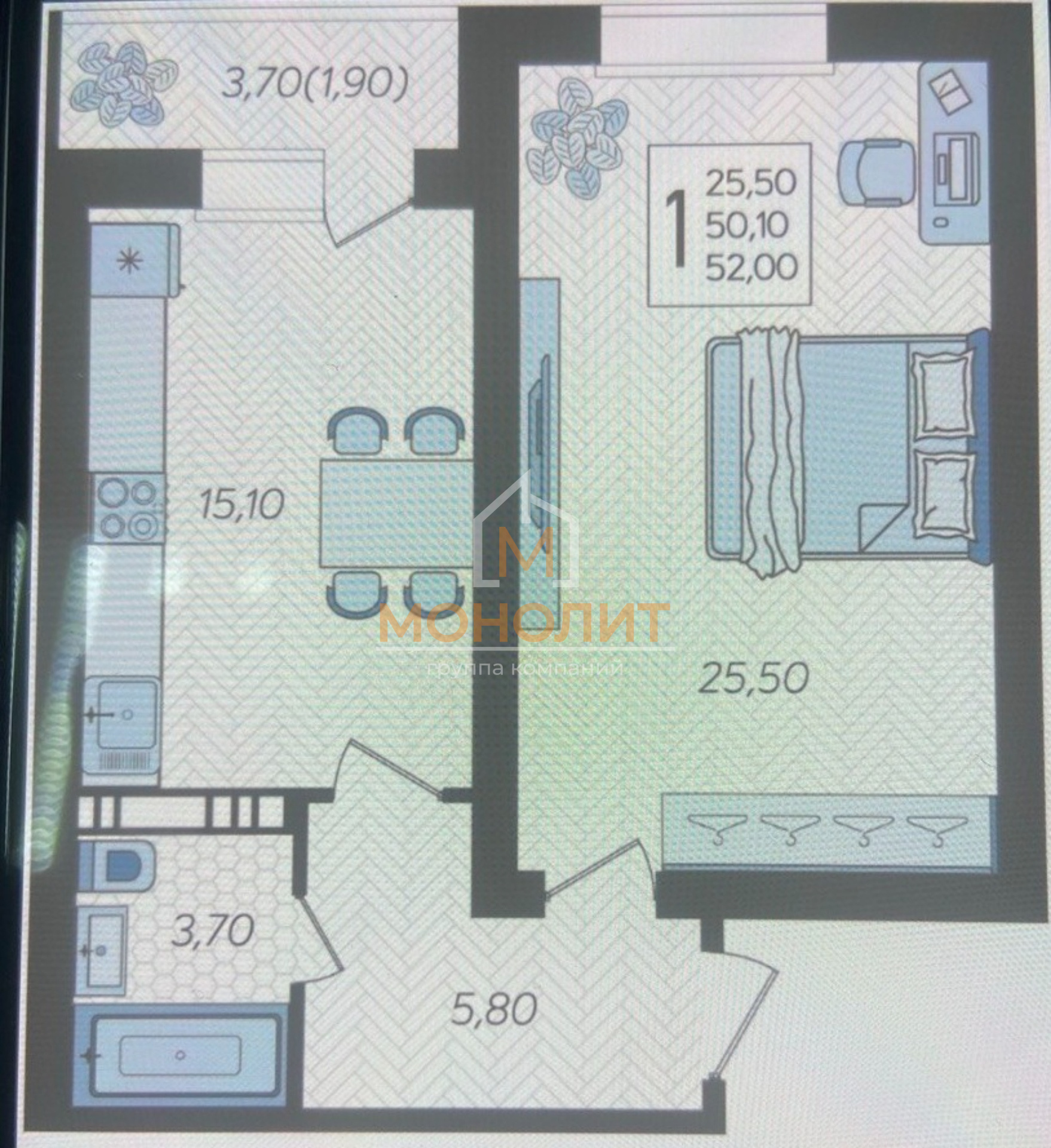 ✔️ общая площадь 50 м²
